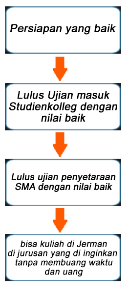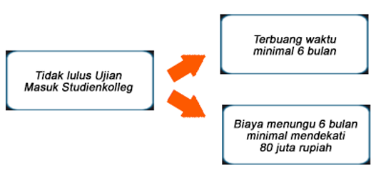 Jika nilai ujian akhir Studienkollegnya tidak baik, maka terbuka kemungkinan siswa tak bisa kuliah, atau sekurang kurangnya tak bisa kuliah di jurusan yang Top seperti kedokteran, pisikologi, biotekhnologi, technik elektro, dan lainnya. Alangkah sayangnya.... Lihat Bagan 4